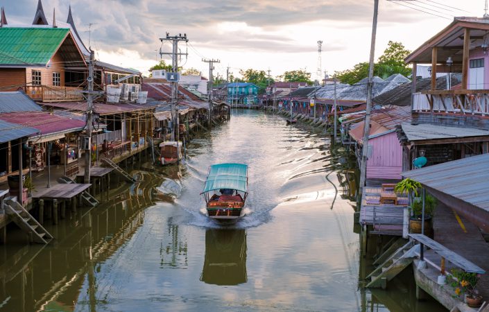- Arrive at the famous Damnoen Saduak floating market by paddleboat