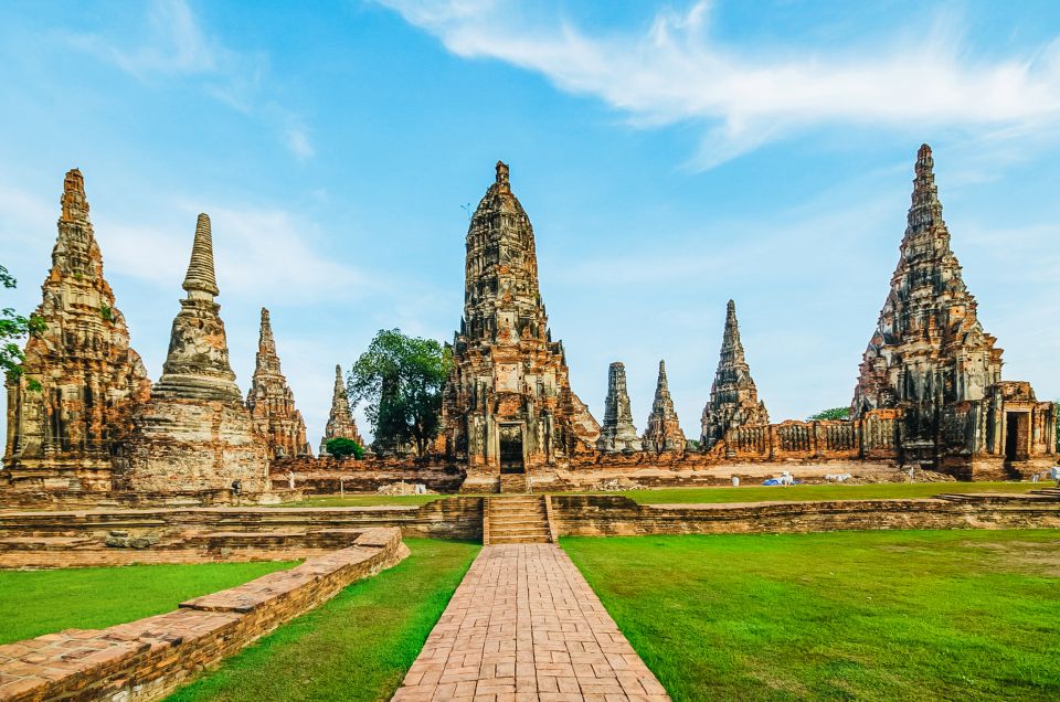 Last but not least, finish your trip at the grand, riverside Wat Chaiwattanaram. Marvel at its compelling architectural style, influenced by the Angkor Wat complex in Cambodia, as you wander around the monumental grounds.