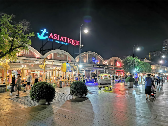 - ASIATIQUE The Riverfront : An open-air mall that offers a dynamic combo of shopping, dining, sightseeing, and events—with scenic river views to boot. Here, you can pop into a large variety of shops selling clothes, souvenirs, bags, and more; sample authentic Thai cuisine at the night market; enjoy live music performances; and take a ride on the ferris wheel or carousel. You can even catch the Calypso cabaret and watch a Muay Thai fight. It’s best to get here via the free daily shuttle boat from Pier Sathorn as taxis and tuktuks (Thailand’s three-wheeled open-air vehicles) encounter frequent traffic jams